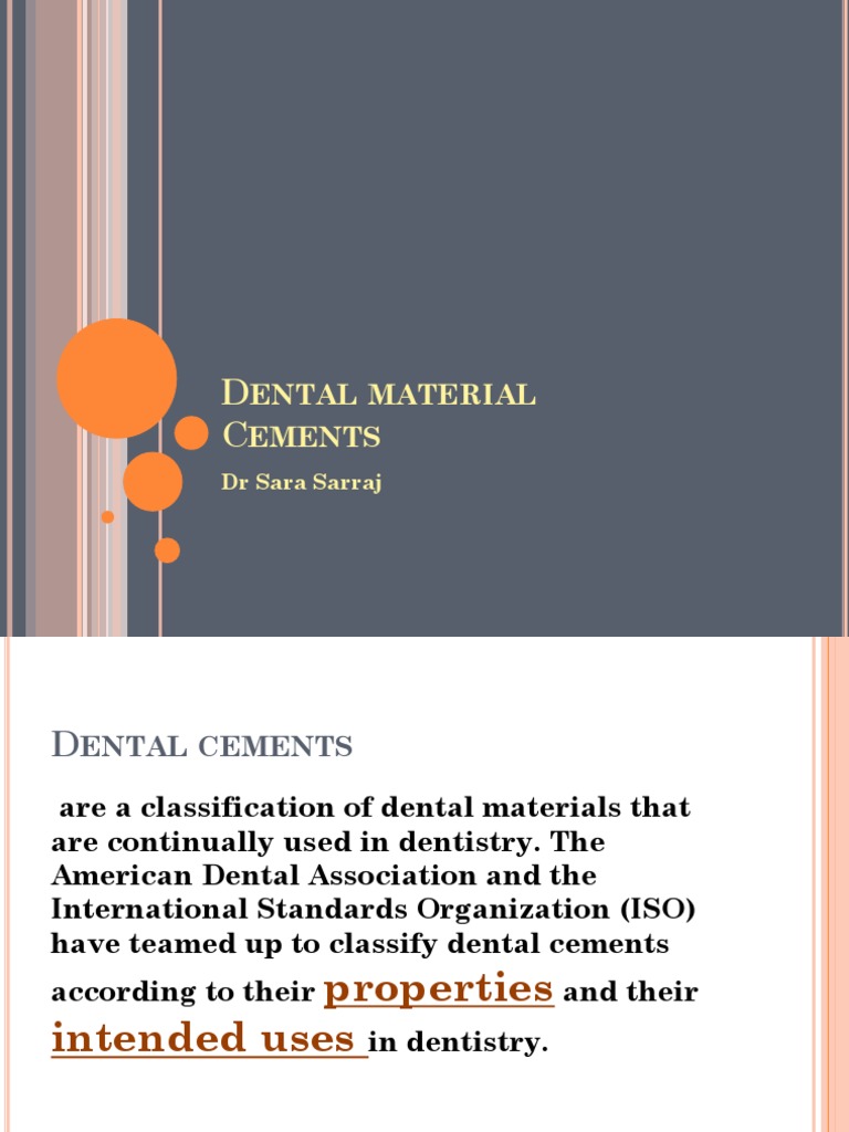 the purpose of this article is to review the currently existing dental cements and to help the dentists choose the most suitable. In this article, they discuss the cementation of current all. The most obvious use of.